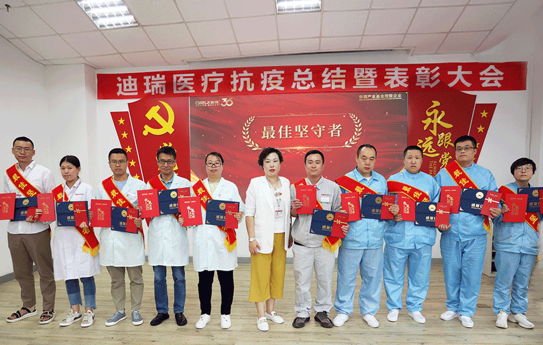 8月19日,迪瑞医疗在长春总部举行了主题为“以初心赴使命,以奋斗践承诺”的抗疫总结暨表彰大会,公司党总支书记、总经理王学敏,执行总经理郑国明,部分高管人员及获奖员工和团队代表共计70余人参加了本次会议。